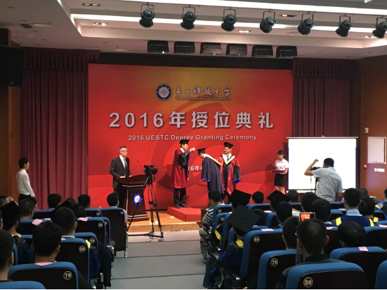 2016年6月27日上午,电子科技大学2016年学生毕业典礼暨学位授予仪式在清水河校区体育馆举行。校党委书记王志强、校长李言荣,中国工程院院士李乐民等校领导出席授位典礼,我院组织广东省全体2016届工程硕士毕业生参加典礼。